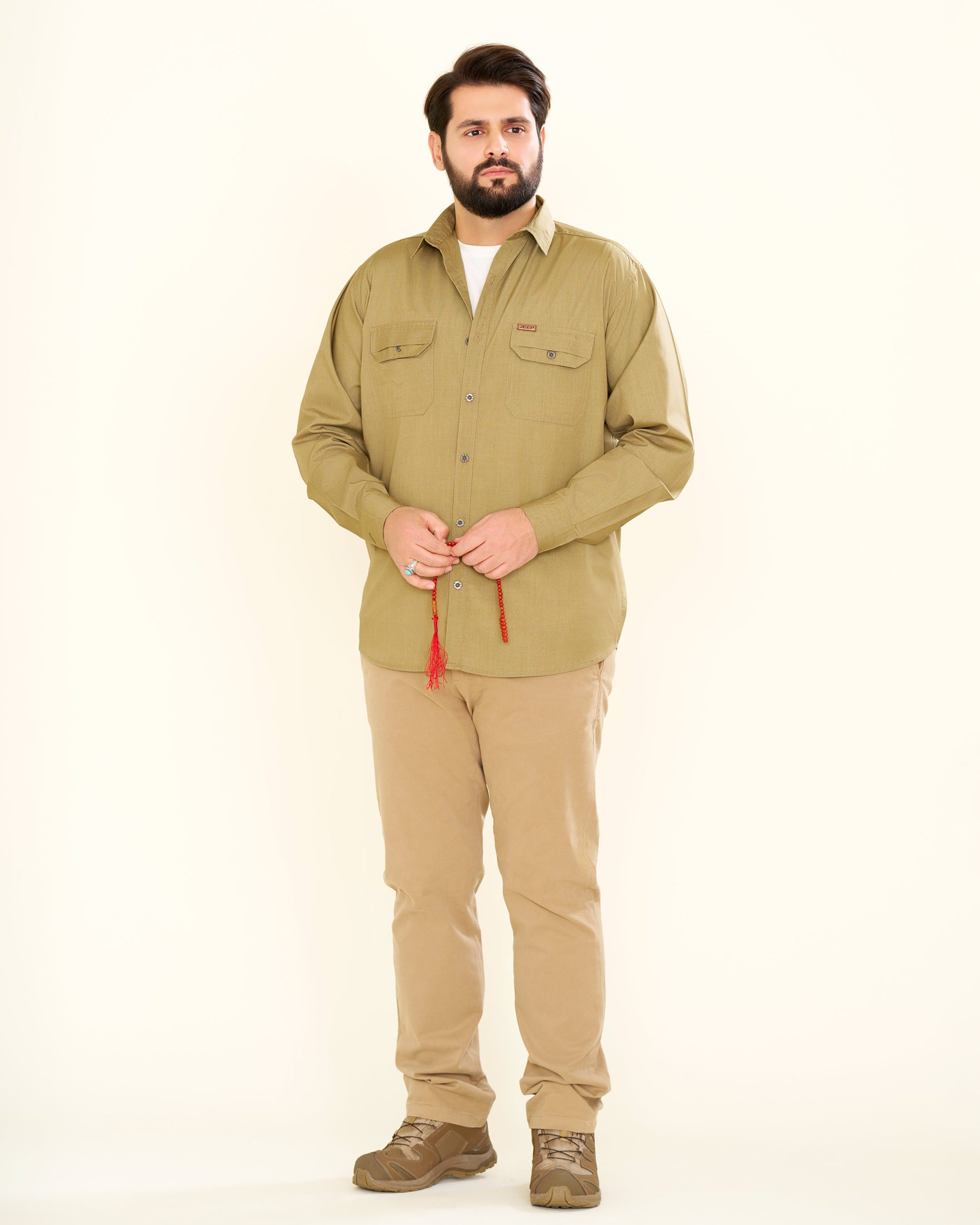 پیراهن کتان دوجیب طرح JEEP زمینه رنگ خردلی (PD12046)
