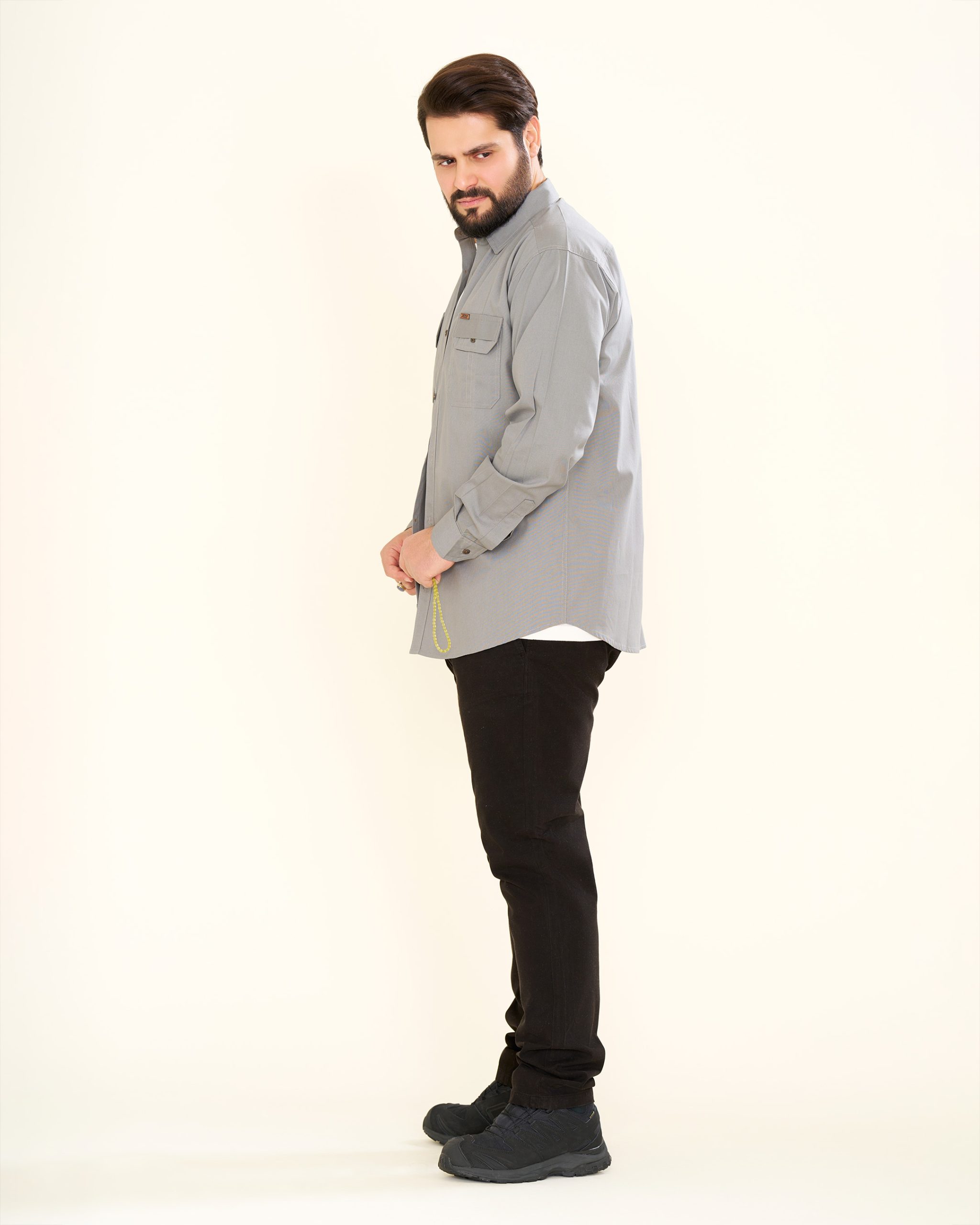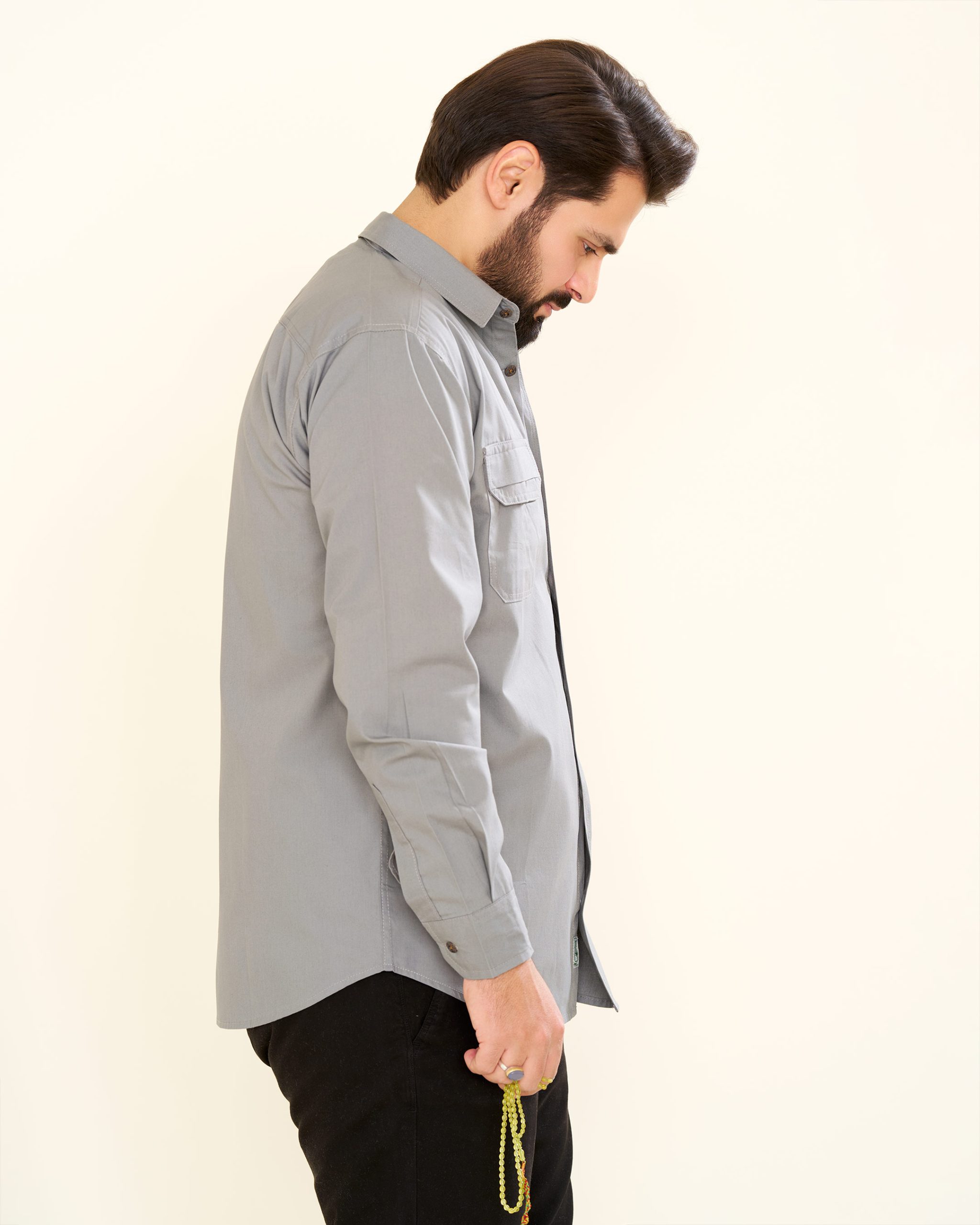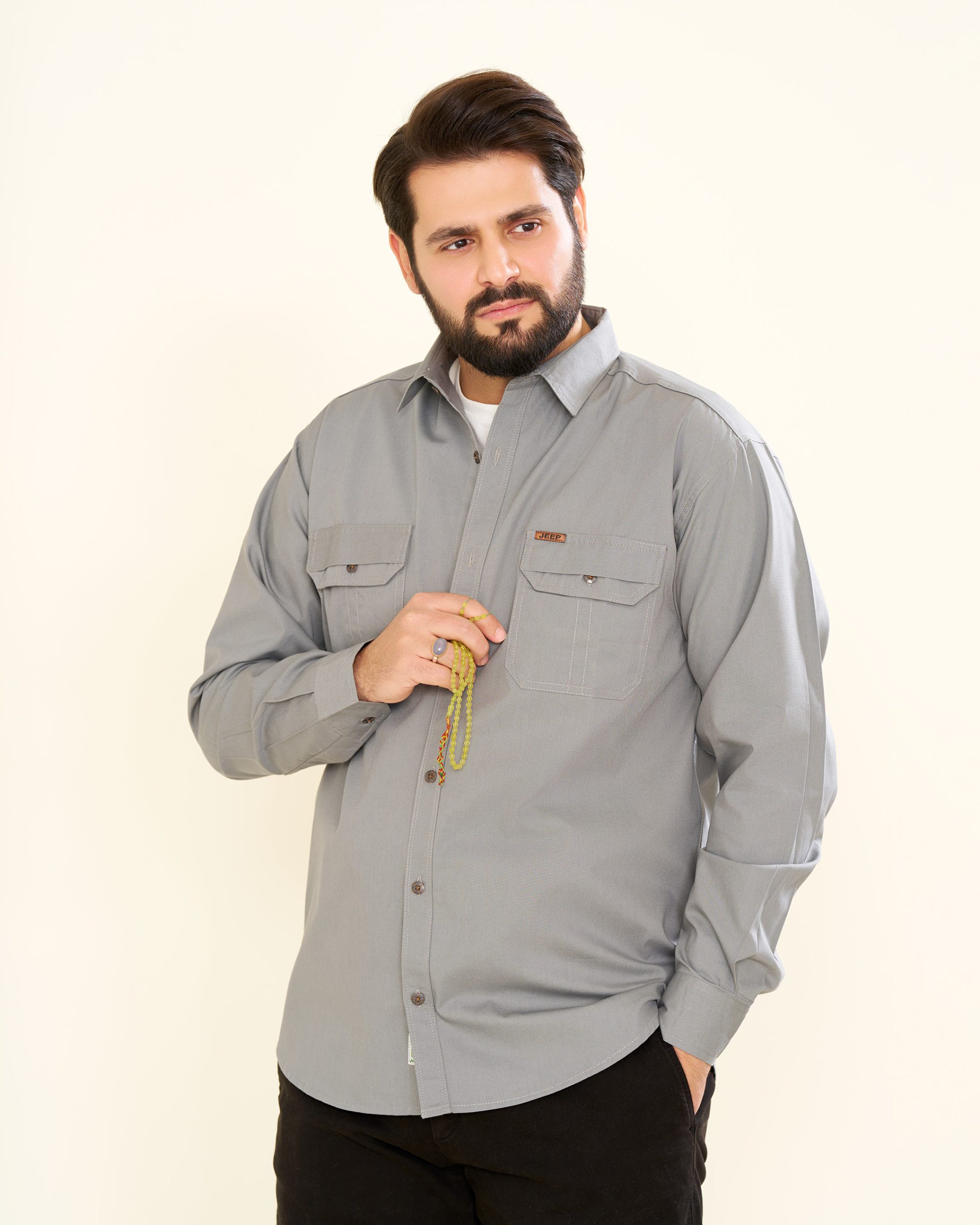پیراهن دو جیب کتان طرح جیپ – آستین بلند.