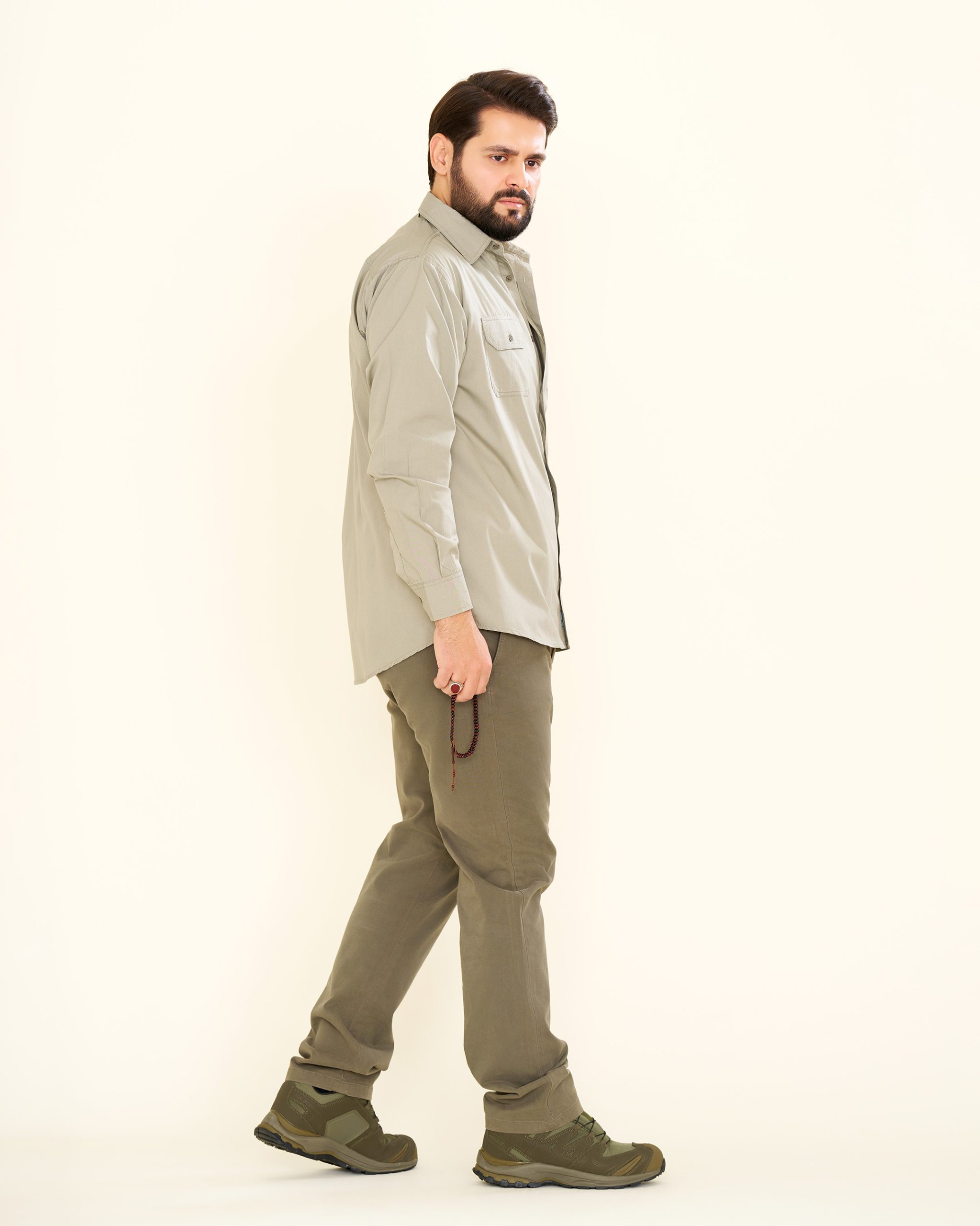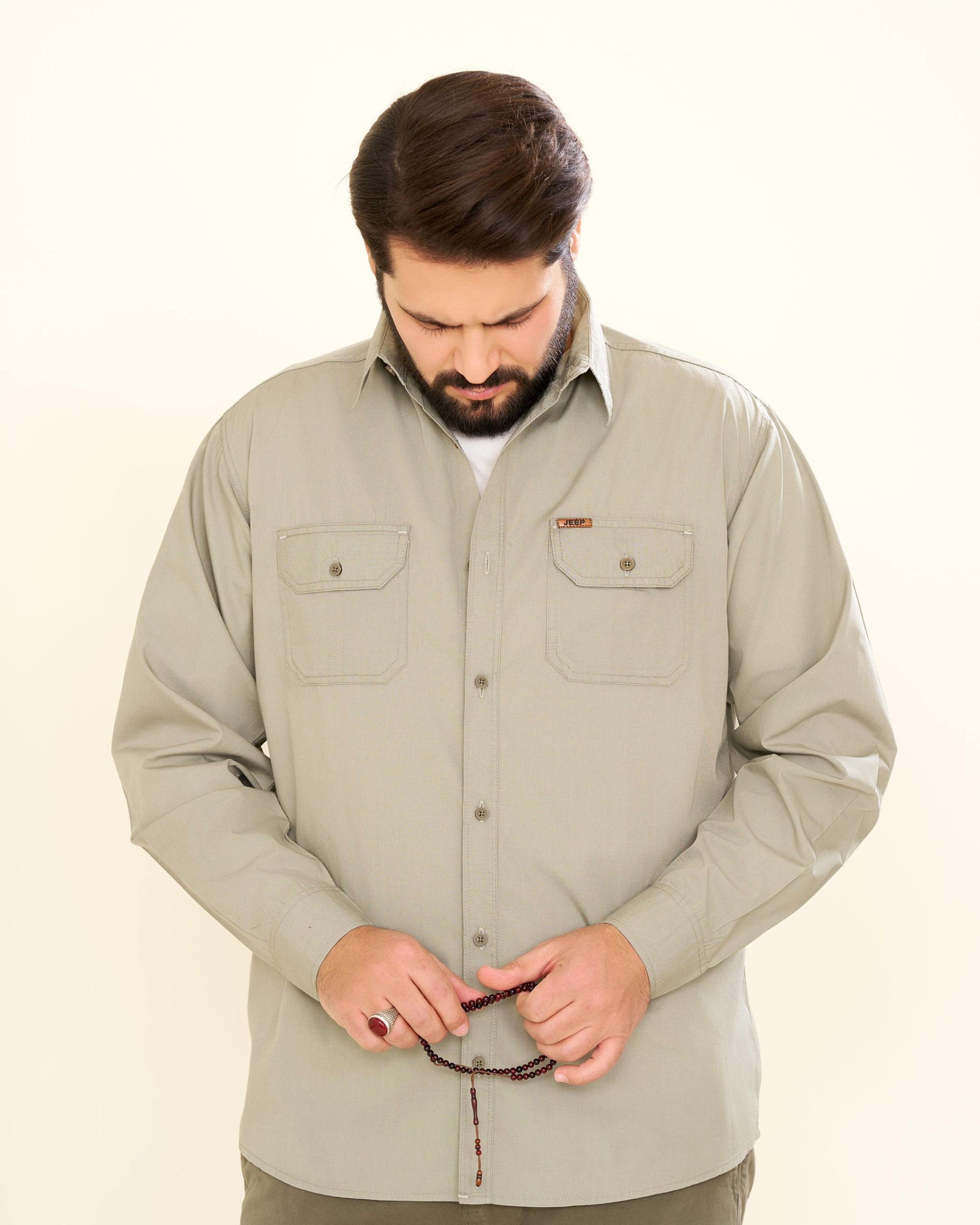 پیراهن دو جیب کتان طرح جیپ – آستین بلند.