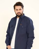 پیراهن کتان دوجیب طرح JEEP زمینه رنگ سورمه ای (PD12049)