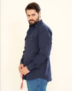 پیراهن دو جیب کتان طرح جیپ – آستین بلند.