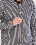 پیراهن یقه انگلیسی پارچه پنبه راه راه زمینه ذغالی کد PS21165