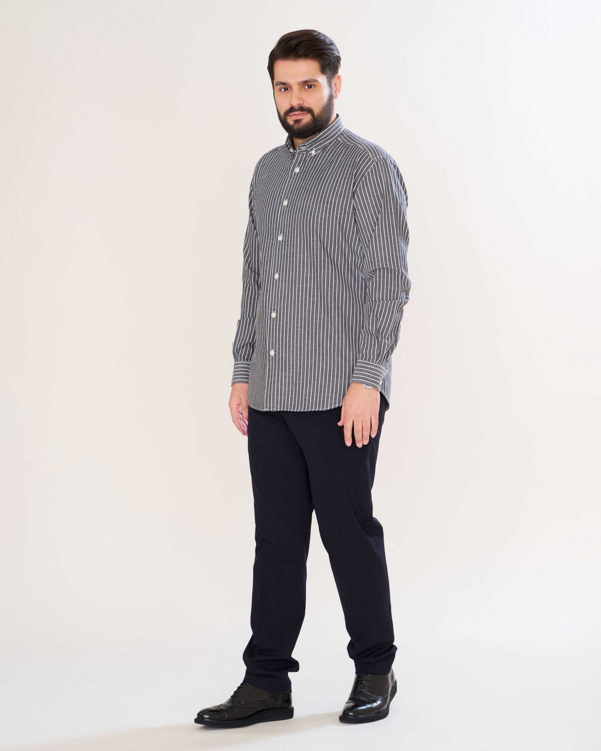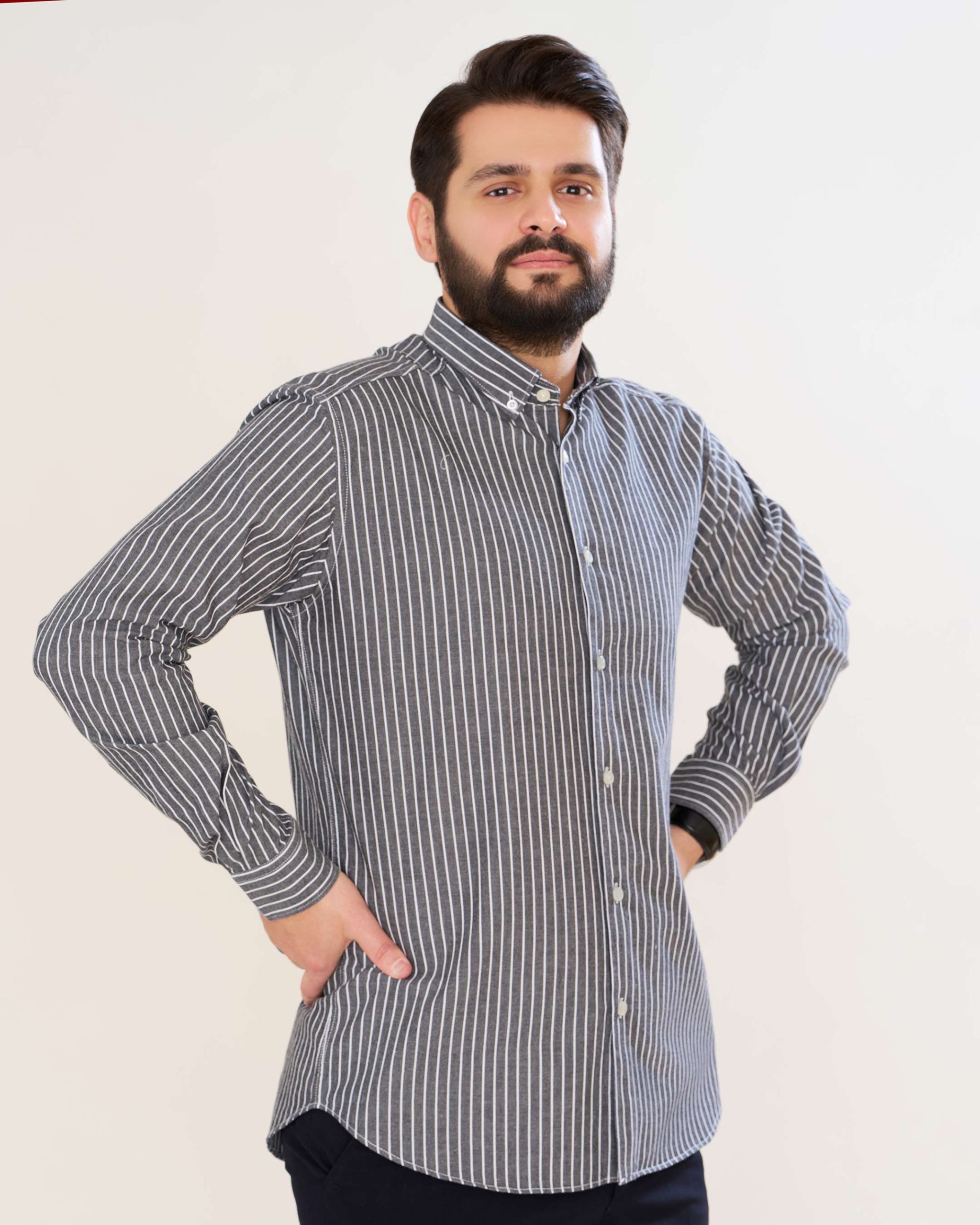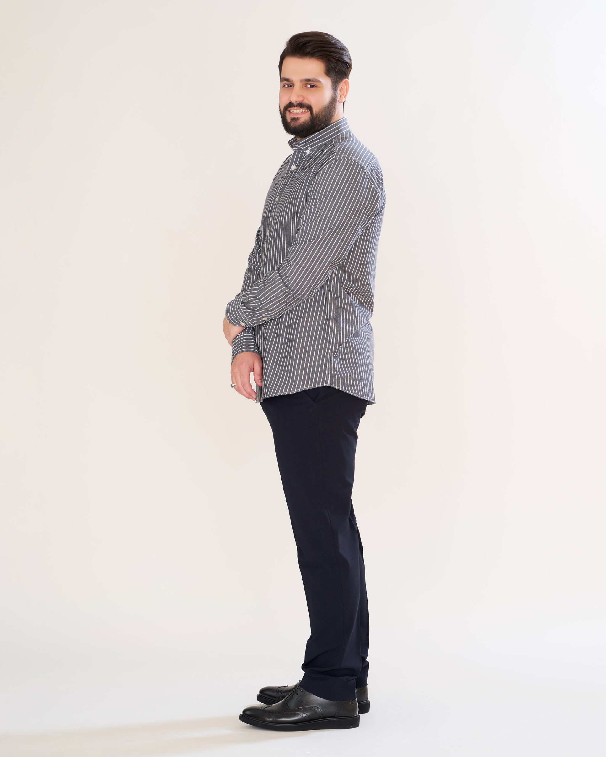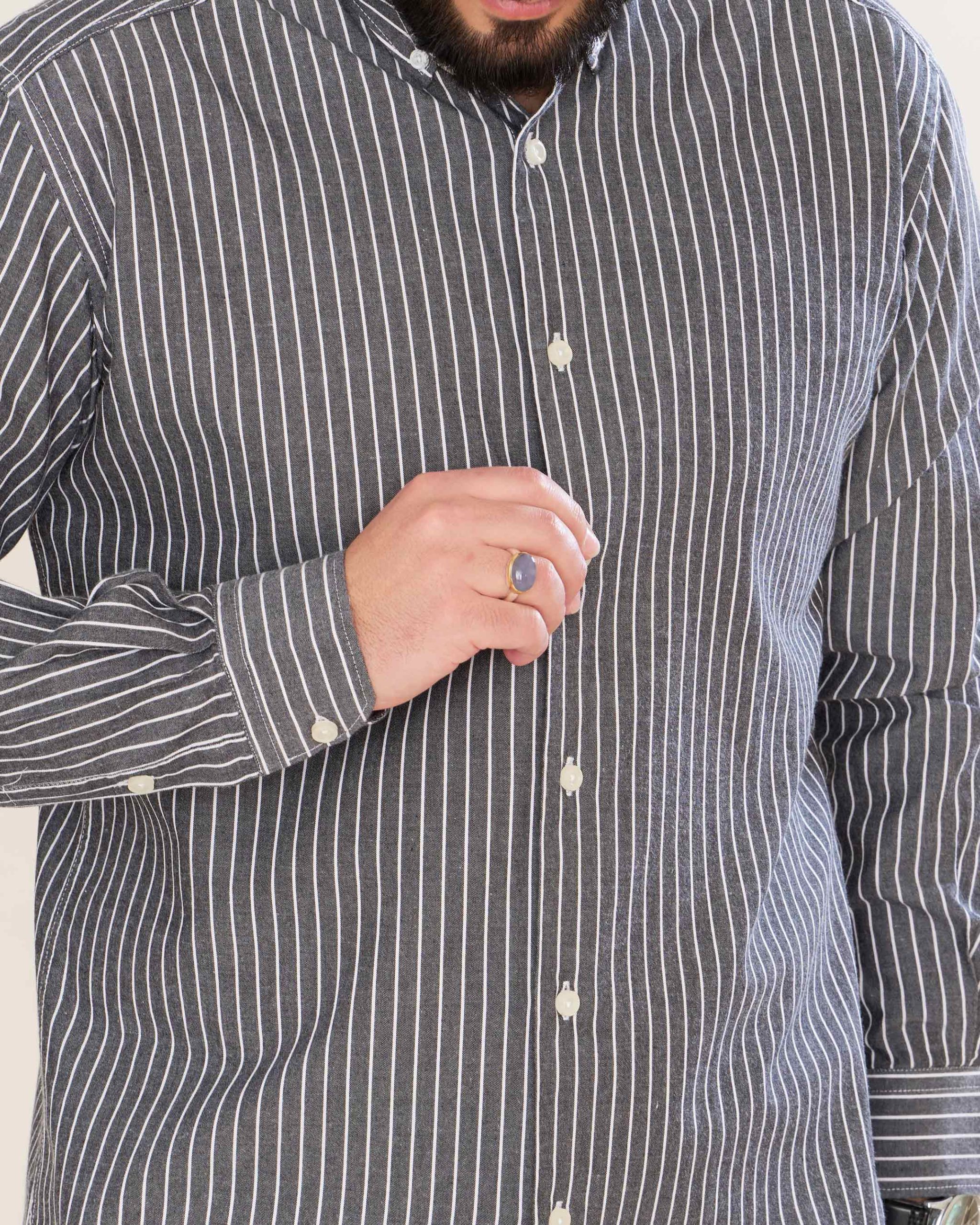 پیراهن یقه انگلیسی پارچه پنبه راه راه زمینه ذغالی کد PS21165