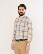 پیراهن یقه انگلیسی پارچه پنبه چهارخانه زمینه کرم کد PS21163