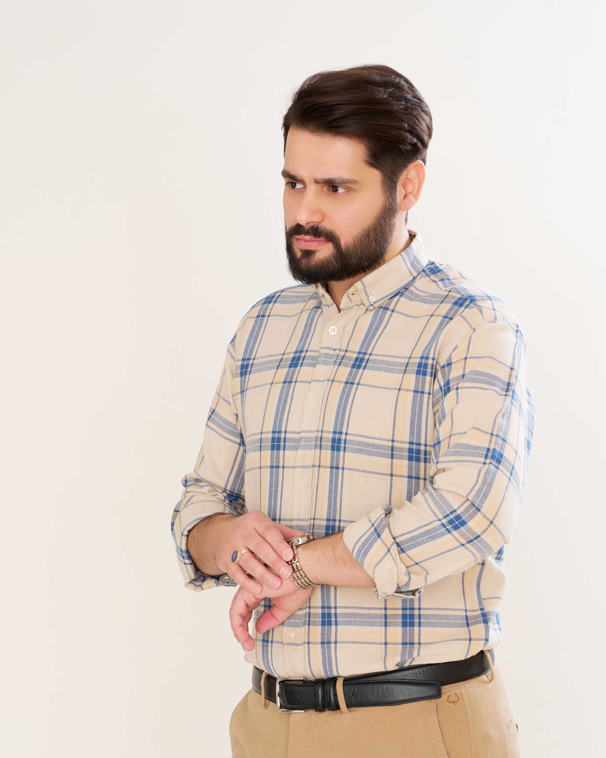 رنگ: کرم با طرح چهارخانه آبیـخاکی