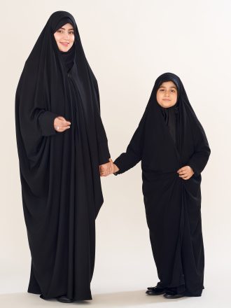 ✨ ست مادر و دختری: چادری که در سایزبندی کودکانه هم دوخته شده، تا دختر کوچکت هم در کنار تو، آرام آرام در همین پوشش نجیب قد بکشد.