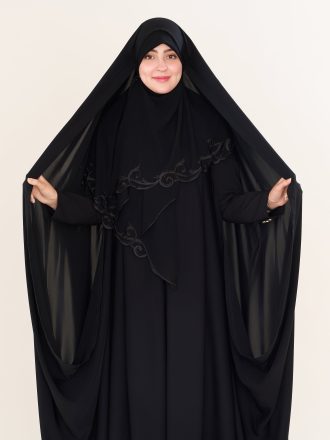 چادر عربی اصیل گلدوزی شده ندا کره اصل طرح زنبق کد CH222076