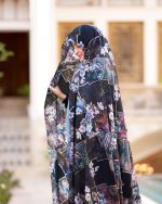 چادر عربی اصیل گلدوزی شده ندا کره اصل طرح لاله کد CH222068