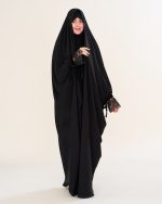 این چادر بر اساس الگوی اصیل عربی دوخته شده؛ الگویی که بهخاطر نوع برش و فرم خاصش، بهزیبایی روی سر و شانهها مینشیند و با هر قدم، موجی آرام و موقر در اطراف شما ایجاد میکند.