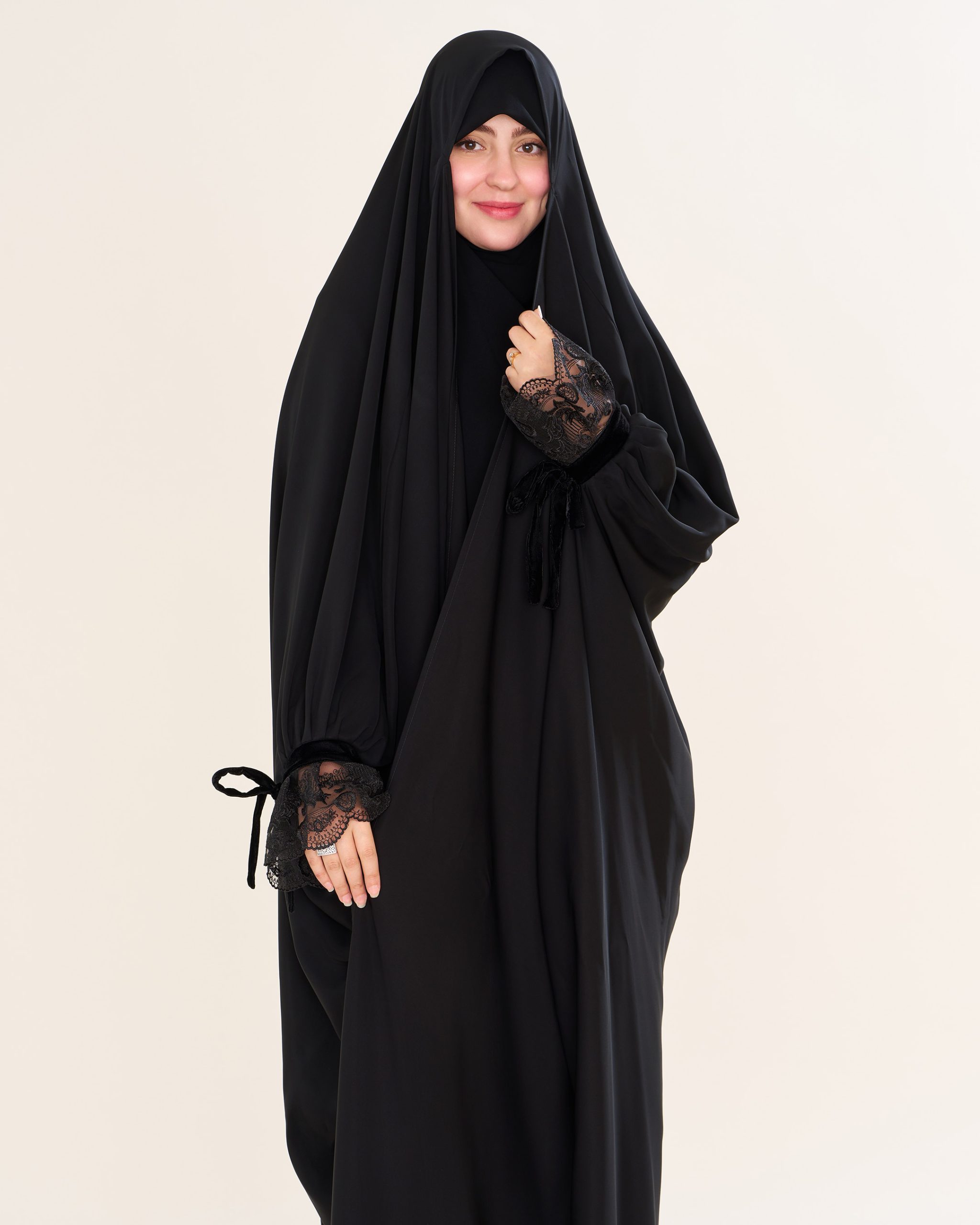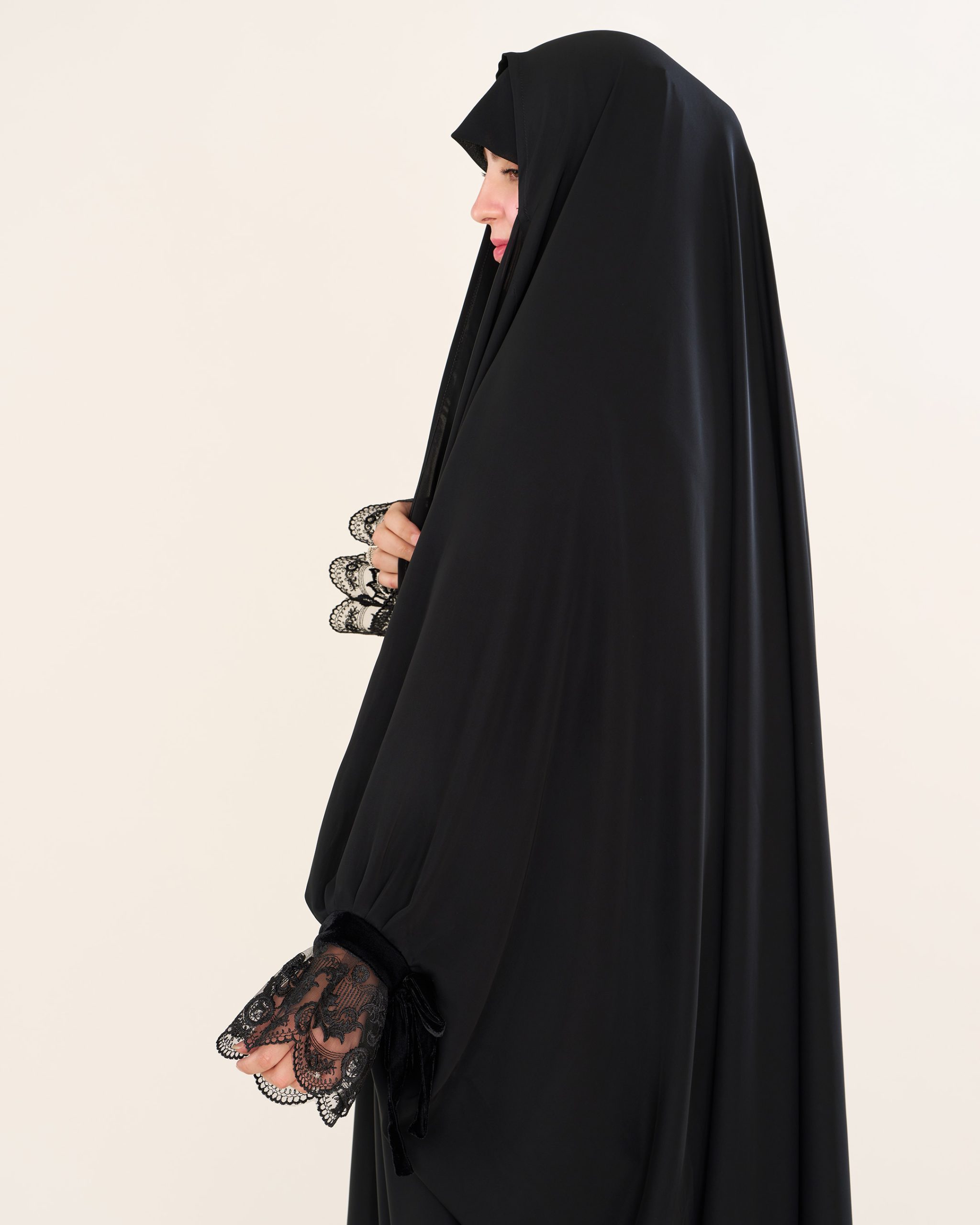 اینگونه، وقتی چادر روی سر قرار میگیرد، بهزیبایی و بدون هیچ ناهمواری یا چروک اضافهای میایستد.