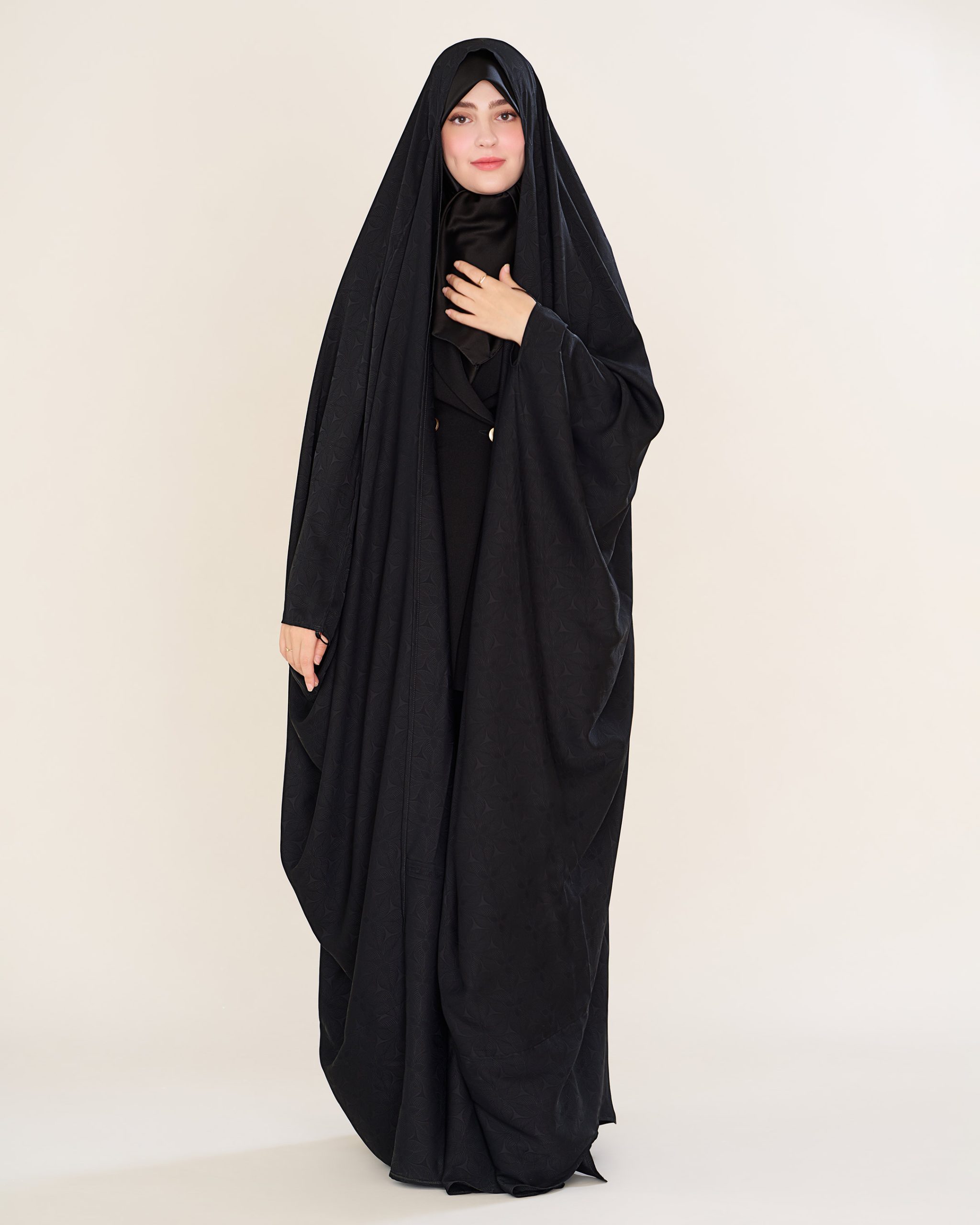 این مدل برای استفادهی روزانه، حضور در محافل مذهبی یا مراسم رسمی گزینهای ایدهآل است. سبک، خوشفرم و در عین حال کاملاً پوشیده.