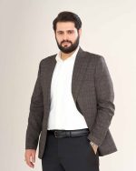 کت تک اسپرت از پارچه فاستونی درجهیک، با طرح چهارخونه زمینه قهوهای، انتخابی فوقالعاده برای استایلهای نیمهرسمی و روزمره.