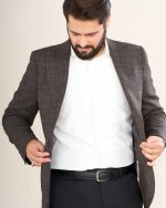 طرح چهارخونه زمینه قهوهای، مناسب استایلهای روزمره و نیمهرسمی