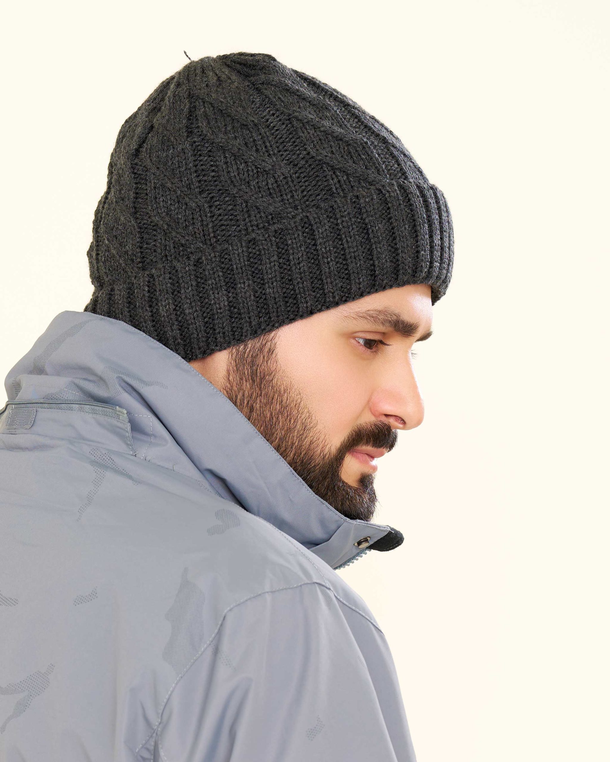 این کلاه با بافت درشت حرفهای تولید شده؛ بافتی که علاوه بر جلوهی مردانه و زمستانی، ماندگاری بسیار بالایی دارد.