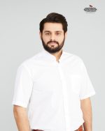 پیراهن یقه دیپلمات آستین کوتاه سفید کد PC12247